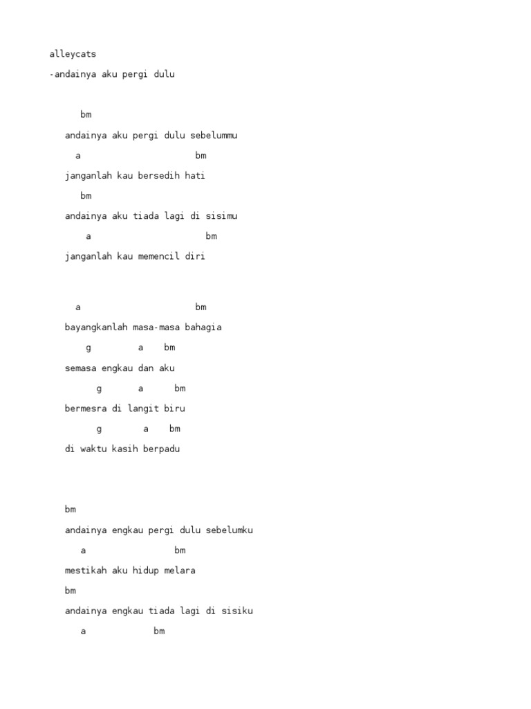 Andainya Aku Pergi Dulu Original Lyrics And Music By Alleycats Arranged By Buluh Betong