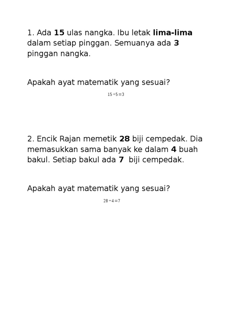 Ayat Matematik Bahagi Tahun 2