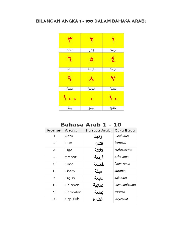Bilangan Angka 1 100 Dalam Bahasa Arab