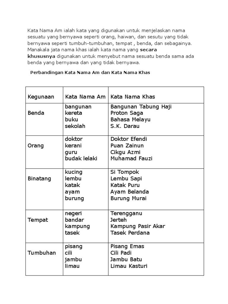 Apa Itu Kata Nama Khas Kata Nama Am Dan Kata Ganti Nama