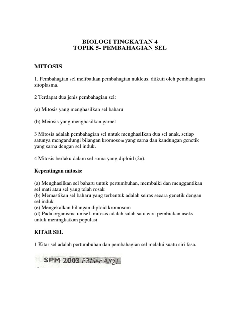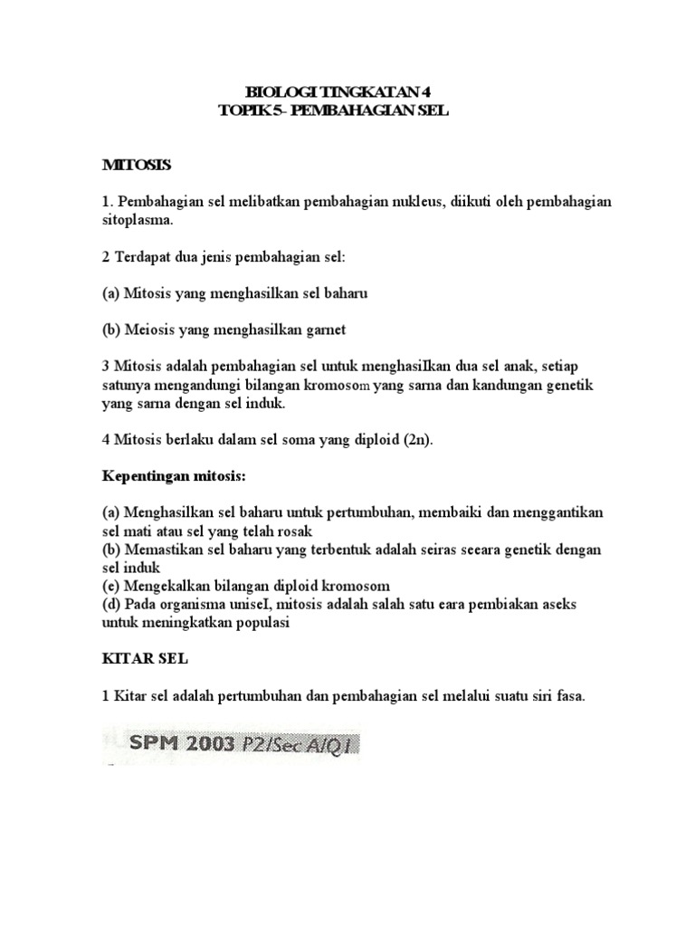 Biologi Tingkatan 4 Bab 6 Pembahagian Sel