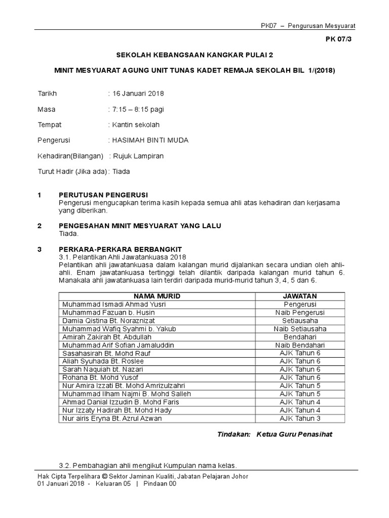 Borang Pk 07 3 Contoh Format Minit Mesyuarat