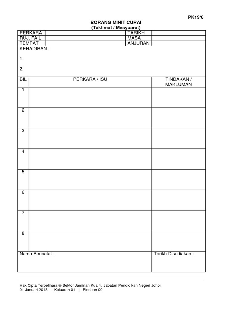 Borang Kehadiran Mesyuarat Spsk 2018 Johor