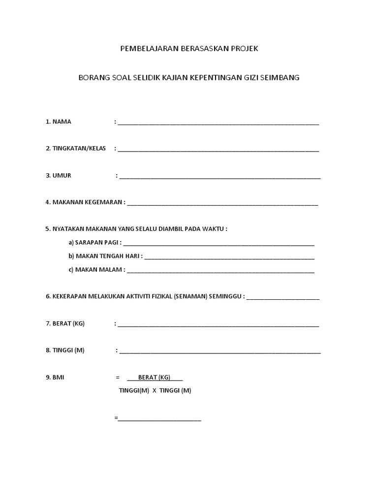 Contoh Soalan Soal Selidik Obesiti Sragen A