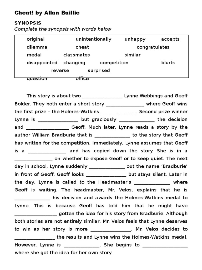 Form 2 Cheat By Allan Baillie Literatureinaction Youtube