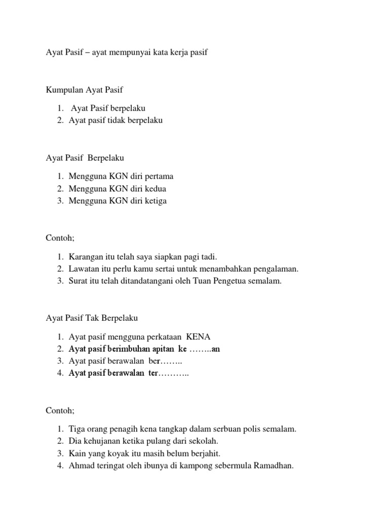 Ayat Aktif Dan Ayat Pasif Docx Document