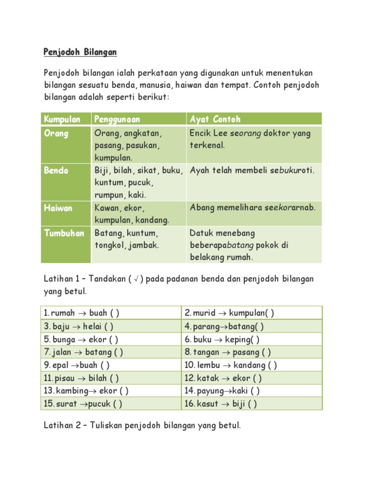 Latihan Penjodohbilangan Bahasa Melayu Lengkapkan Ayat Ayatdibawah Inidengan Penjodoh Bilangan Yang Elementary Learning Grammar And Vocabulary Malay Language