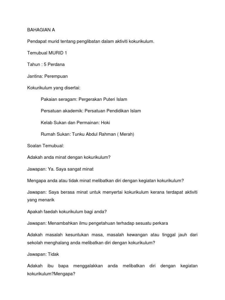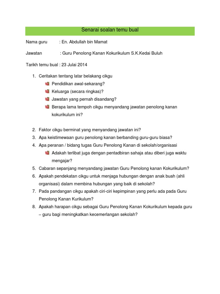 Contoh Soalan Temubual Guru Kokurikulum