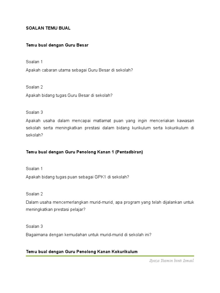 Pbs1 Soalan Temubual