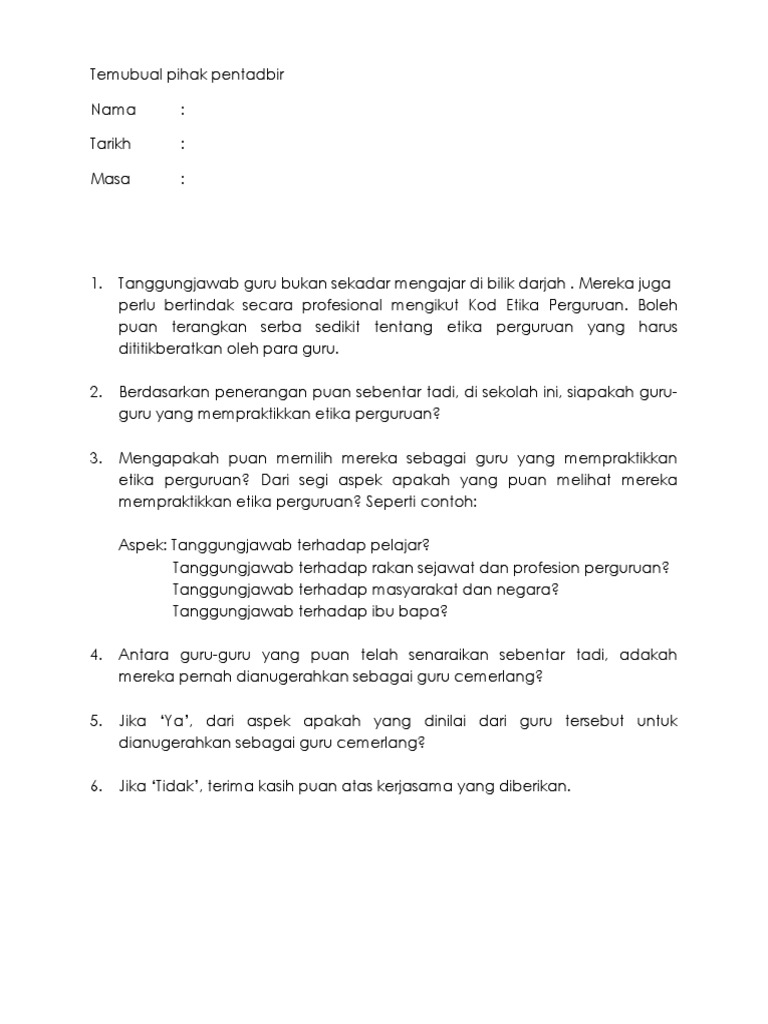 Contoh Soalan Temubual Etika Keguruan