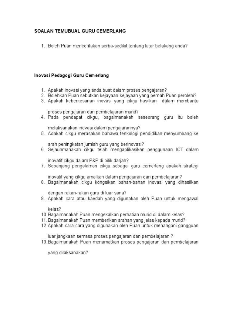 Soalan Temubual Guru Cemerlang