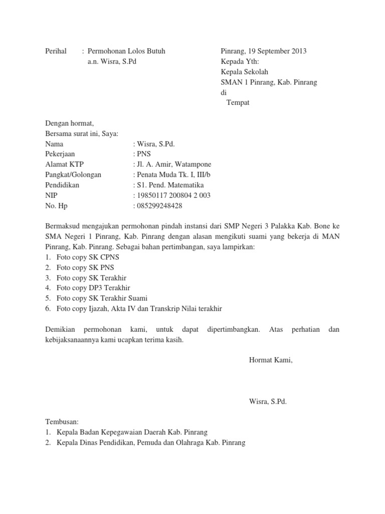 25 Contoh Surat Permohonan Mutasi Kerja Pns Dan Guru Contoh Surat
