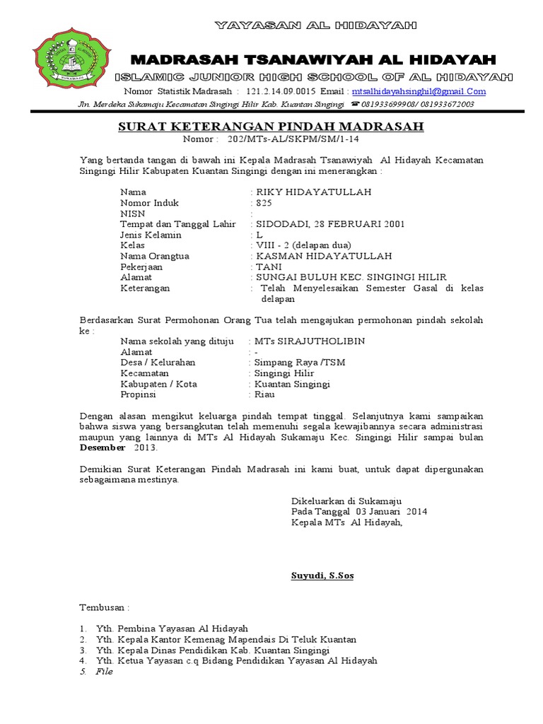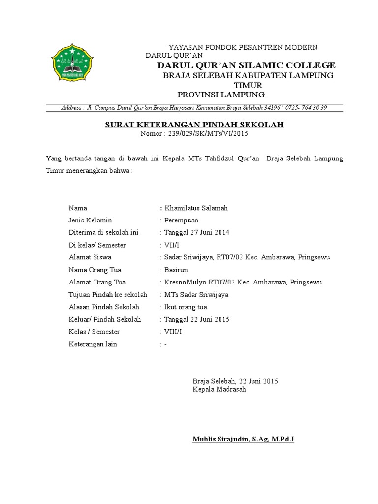 Gambar Surat Pindah Sekolah Mts Doylc Asia