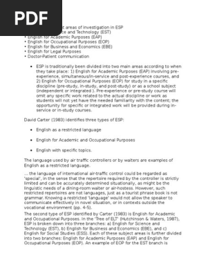 Pdf English For Specific Purposes What Does It Mean Why Is It Different