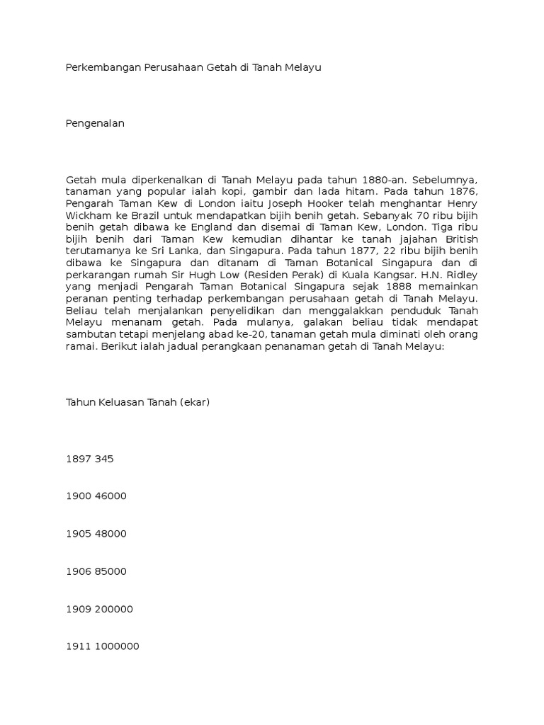 Perkembangan Perusahaan Getah Di Tanah Melayu