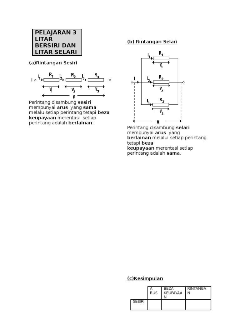 9 Litar Bersiri Dan Selari Pps Litar Bersiri Dan Selari Litar Bersiri Susunan Perintang Secara Bersiri Litar Selari Susunan Perintang Secara Selari Course Hero