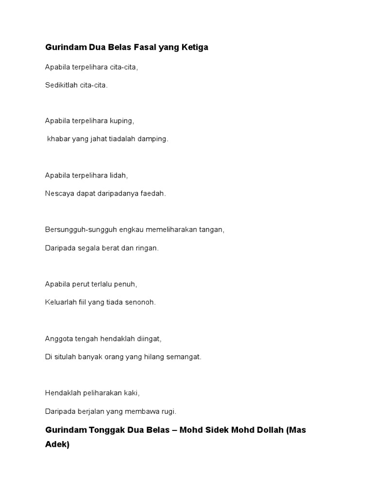 Soalan Gurindam Dua Belas Fasal Ketiga Selangor L