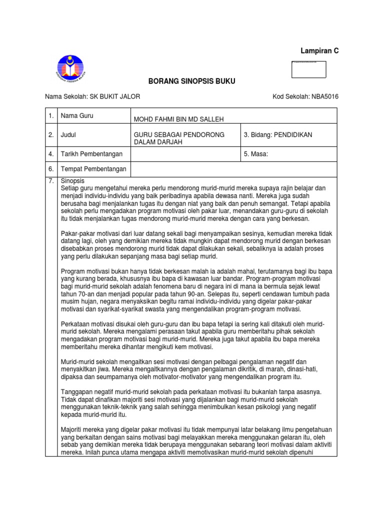 Guru Sebagai Pendorong Dalam Darjah Doc Borang Program Pemerkasaan Budaya Amalan Membaca Buku Kalangan Guru Pelatih Ipg Kampus Temenggong Ibrahim Course Hero