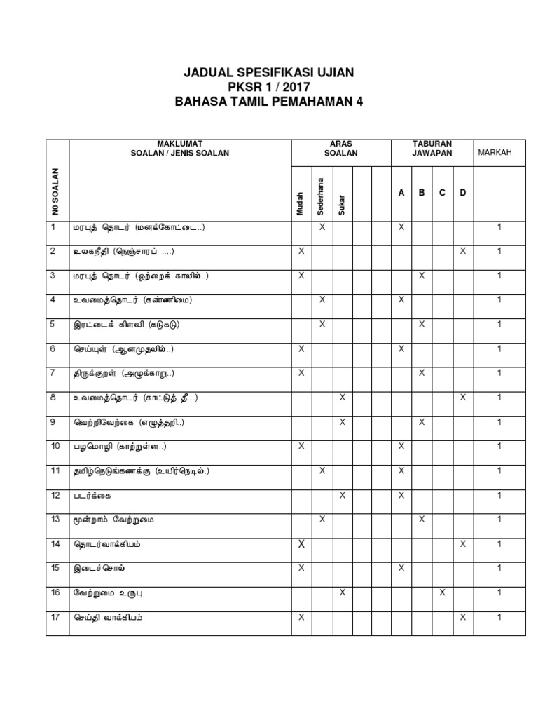 Jadual Spesifikasi Ujian Bahasa Tamil 4pksr1 Pdf