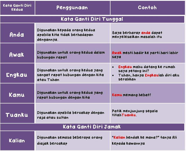 Nota Bahasa Malaysia Kata Ganti Nama Diri
