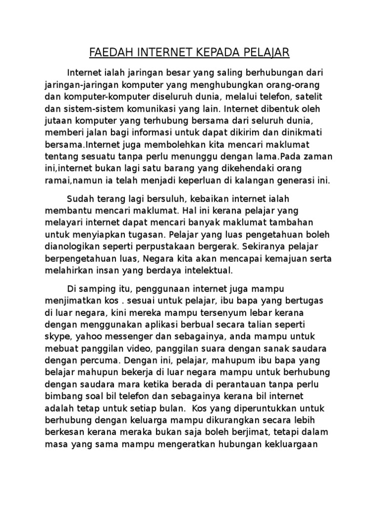 Contoh Karangan Manfaat Internet Kepada Pelajar Docx Document