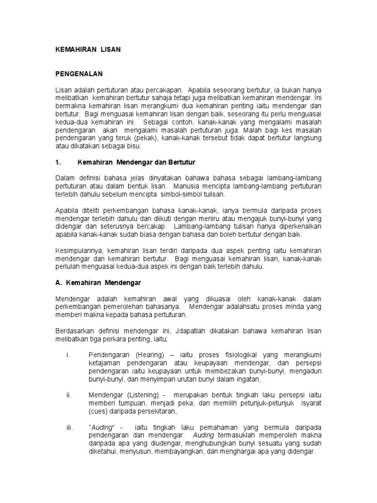 Definisi Dan Konsep Kemahiran Mendengar Dan Bertutur