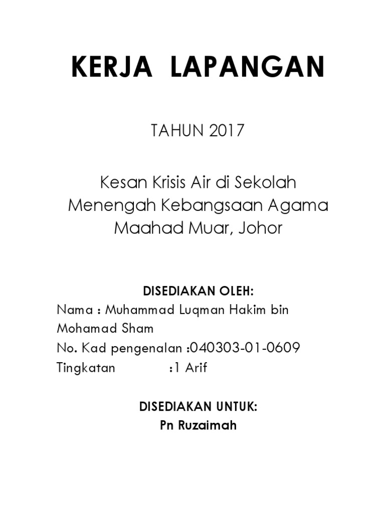 Kerja Lapangan Geografi Tingkatan 1 Krisis Air