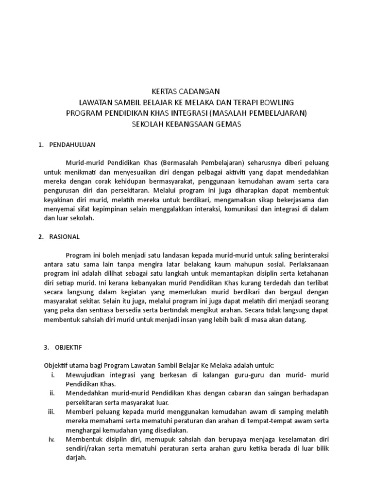 Kertas Cadangan Lawatan Sambil Belajar Ke Melaka Doc