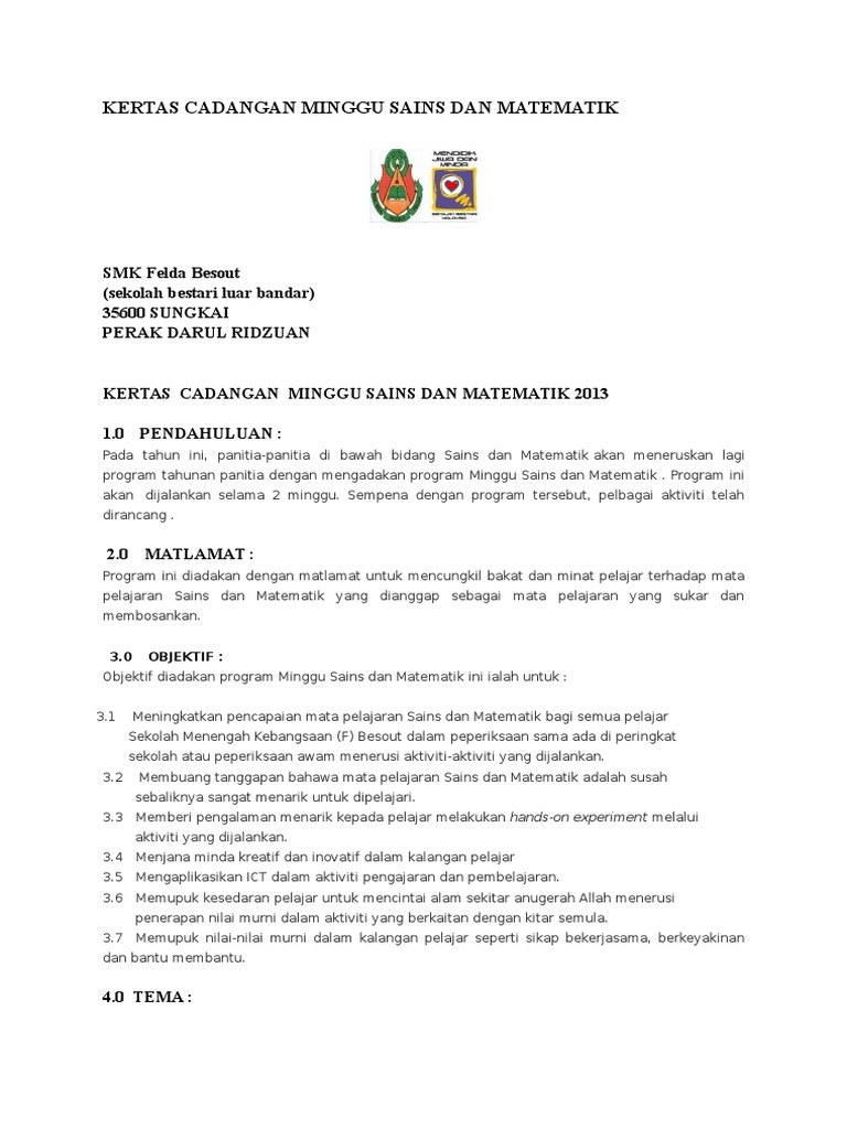Kertas Kerja Bulan Sains Dan Matematik Sumber Pendidikan