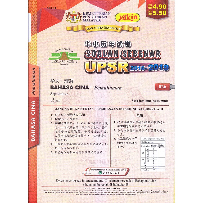 Kertas Soalan Sebenar Upsr 2019 Sjkc