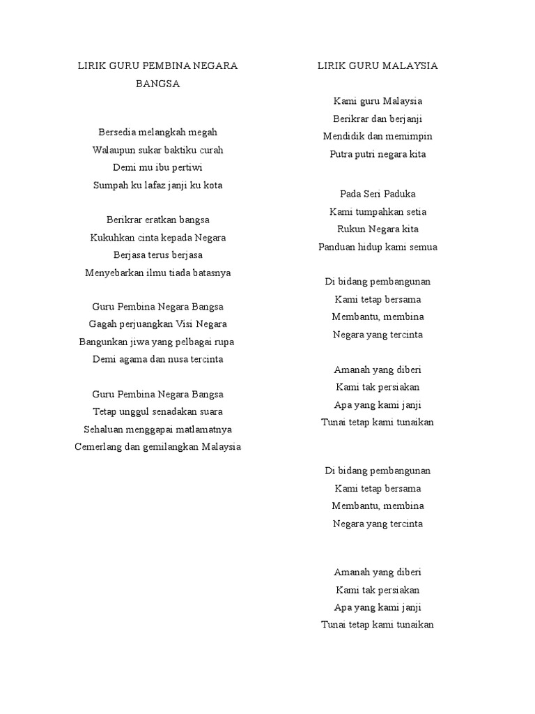 Lirik Lagu Guru Pembina Negara Bangsa Tema Hari Guru 2016 Docx