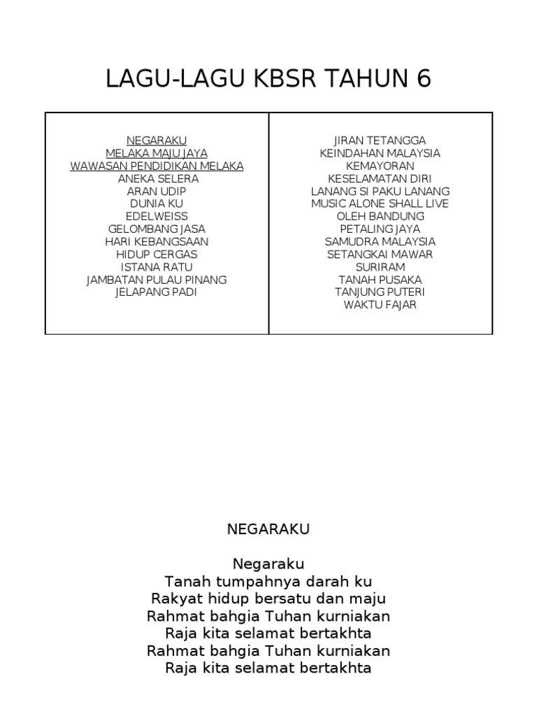 Senikata Lagu Thn 6
