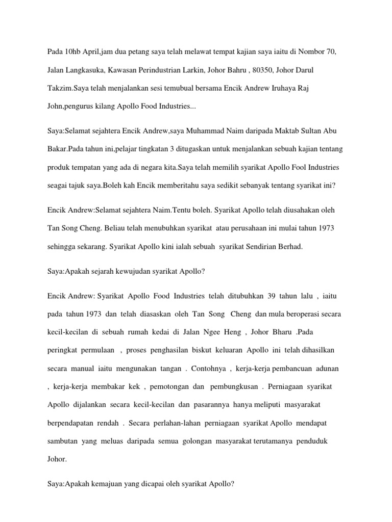 Contohnya Syarikat Apollo Food Industri Holding Berhad Akan Melakukan Course Hero