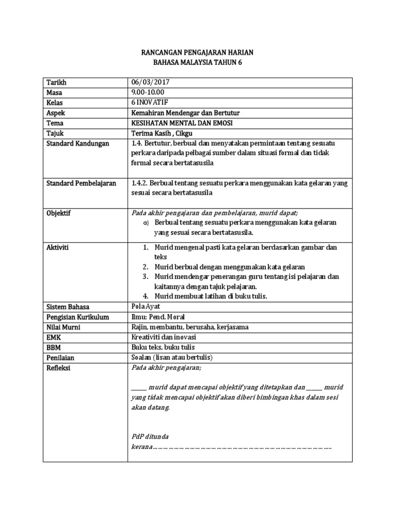 Rph Bm Membaca Menulis Dan Mendengar Dan Bertutur