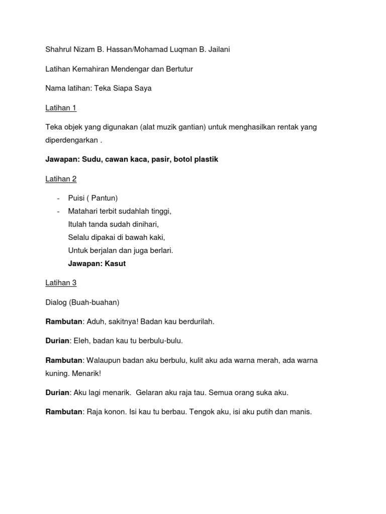 Latihan Meneka Kemahiran Mendengar Dan Bertutur