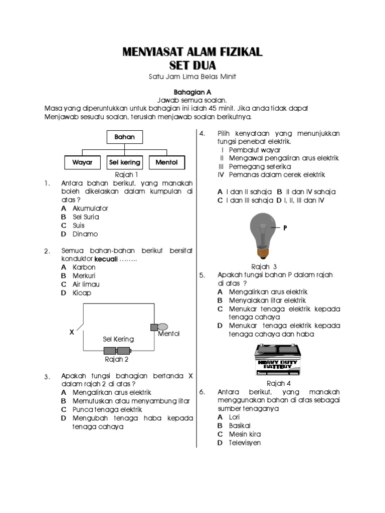 Soalan Sains Tahun 5 Litar Elektrik Malacca C