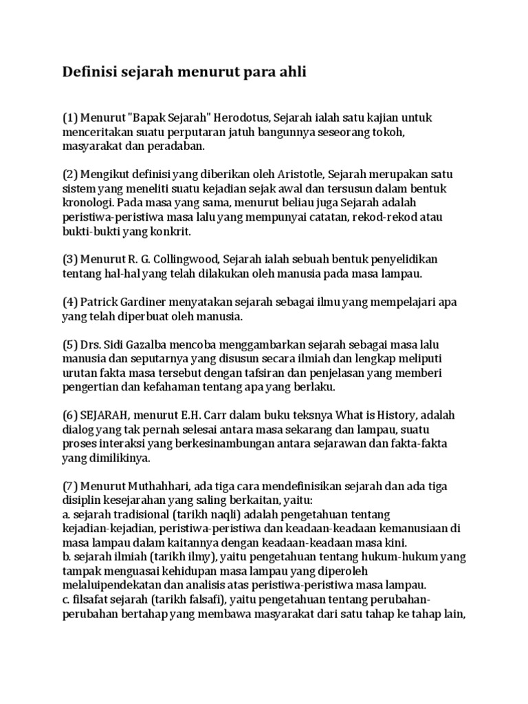 Definisi Sejarah Menurut Para Ahli