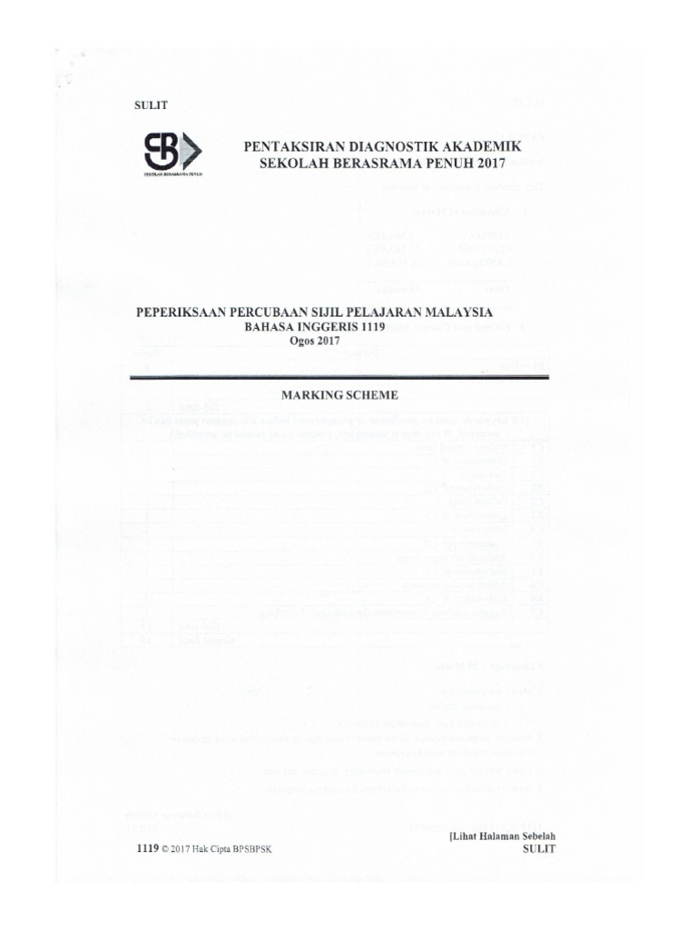 Paper 1 Marking Scheme Bi Spm Vocabulary Sentence Linguistics