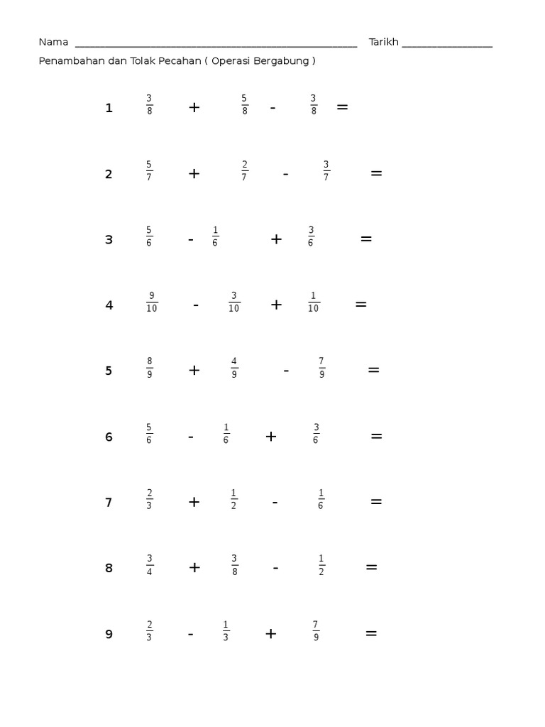 Soalan Matematik Operasi Bergabung Tahun 5 Kosong Kerji
