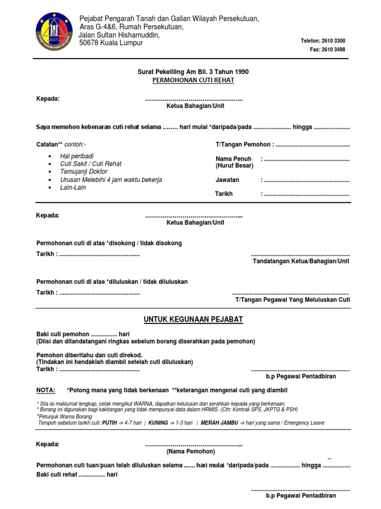 Surat Permohonan Cuti Rehat Surat Rasmi Y