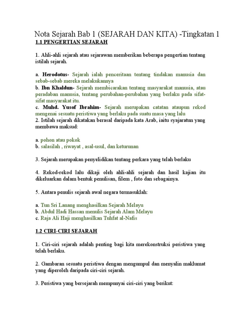 Nota Sejarah Tingkatan 1 Bab 1 2017