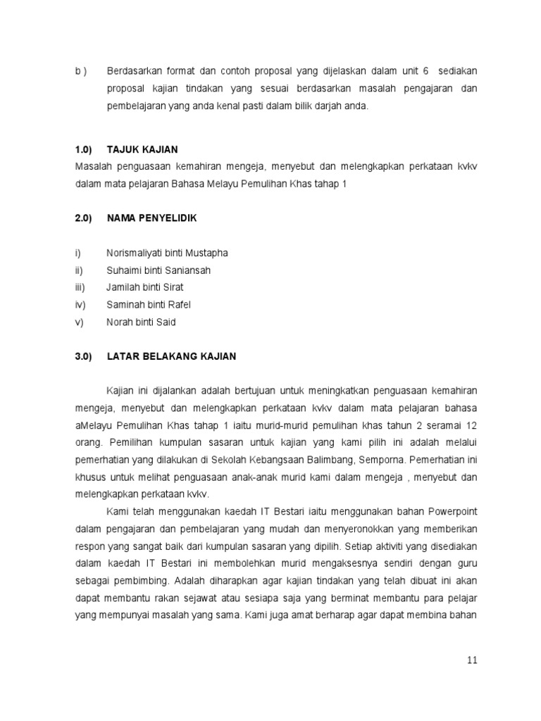 Pdf Kertas Cadangan Proposal Kajian Tindakan Ben Lau Academia Edu