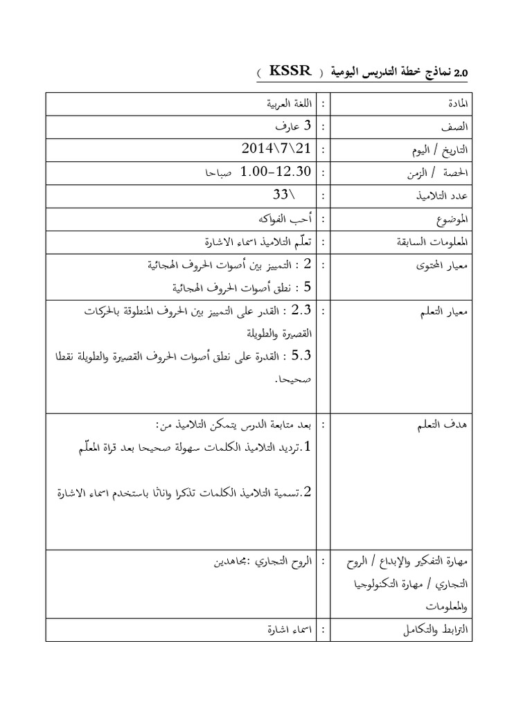 Contoh Penulisan Rph Bahasa Arab 2015 Kegunaan Negeri Johor Thn 5 M1