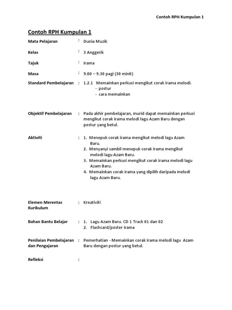 Contoh Rph Muzik Tahun 3 Kssr