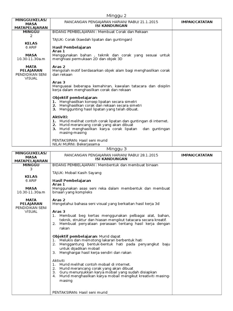Download Rpt Pendidikan Seni Visual Tahun 4 Penting Psv Rancangan Pengajaran Harian Kssr Seni Tahun 4 Skoloh