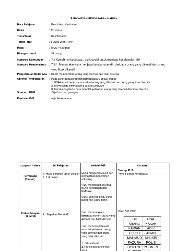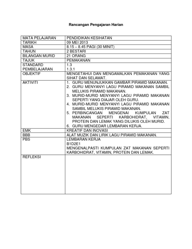 Rancangan Pengajaran Harian Pendidikan Kesihatan