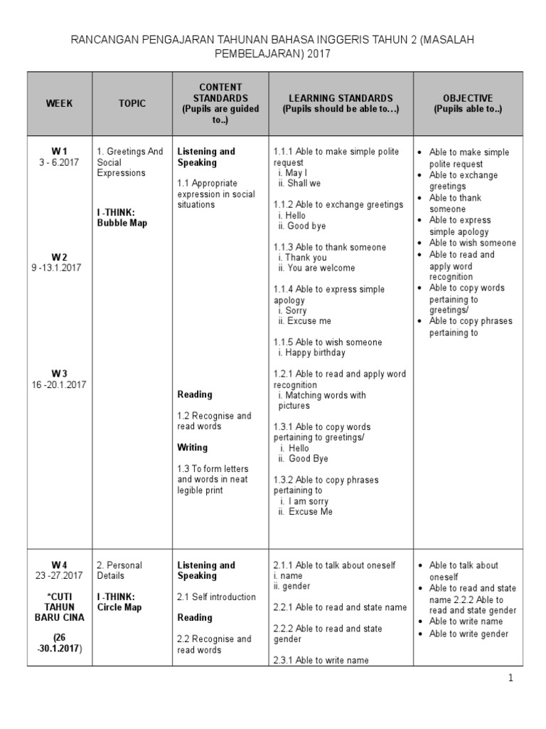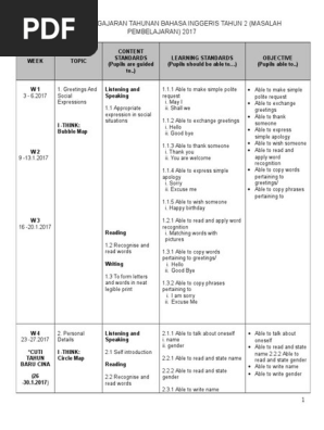 Rancangan Pengajaran Tahunan Bi Tahun 3 Kssr Yearly Scheme Of Work Ye