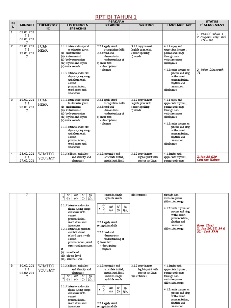 Rancangan Tahunan Bi Tahun 1 2017 Stress Linguistics Rhyme