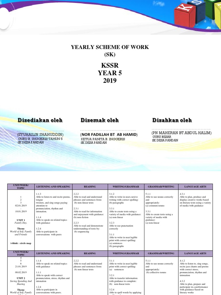 Rpt Rancangan Pengajaran Tahunan Tahun 5 Sk Sk Bandar Baru Seri Petaling 2