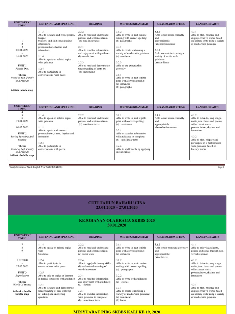 Year 1 2 3 4 Simplified Scheme Of Work For Sekolah Kebangsaan Teacherfiera Com